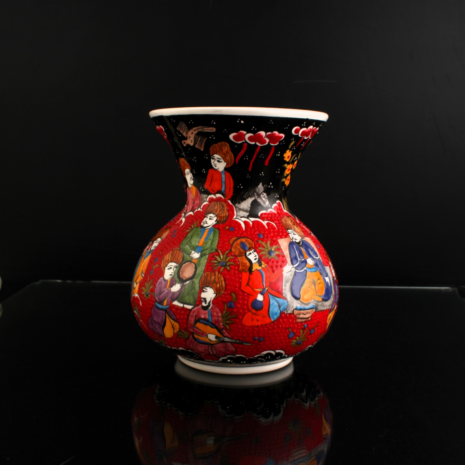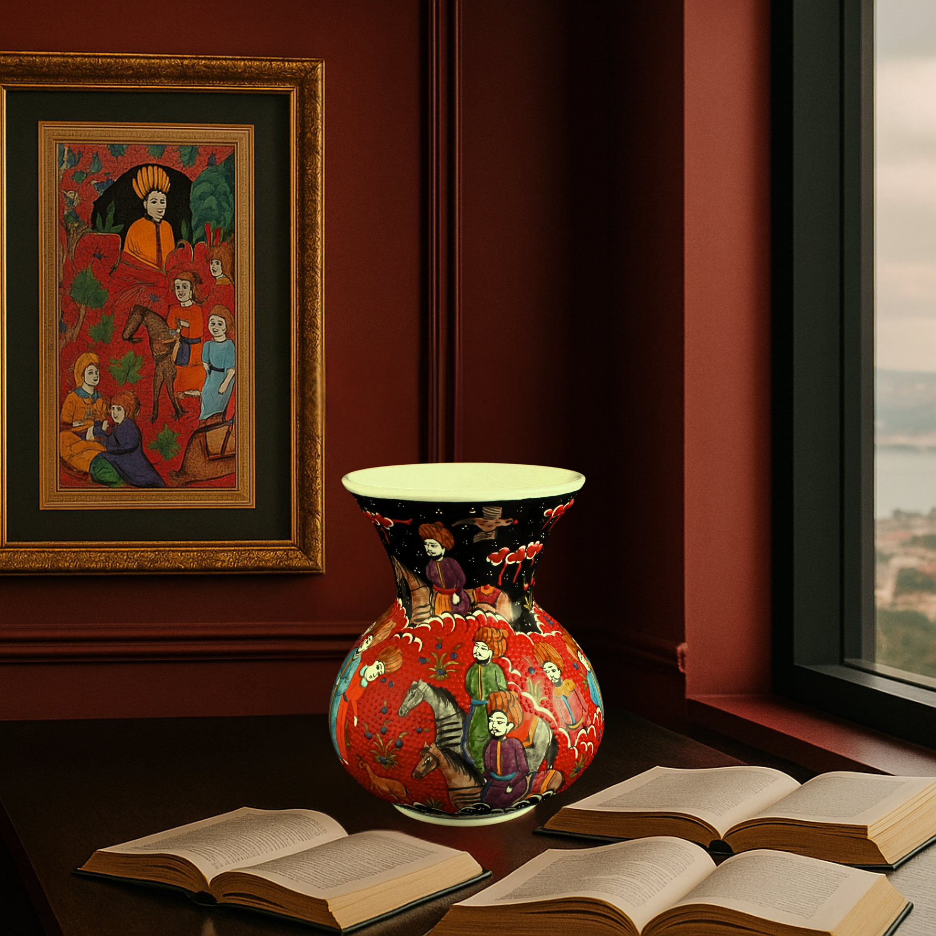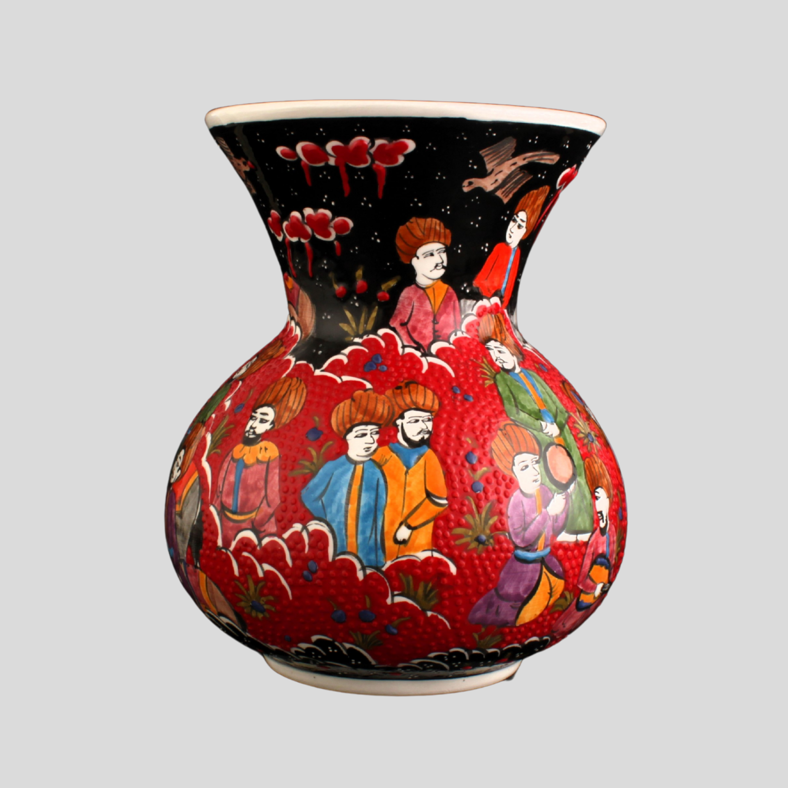 Oğuz töresindeki toy, toplumun bir araya geldiği bereket ve birlik şölenidir. Eski “saçı” geleneğindeki paylaşımdan ilhamla, motif dilinde çoğalan yapraklar ve lâle karanfil ikilisi, birlikte büyüyen aileyi simgeler. Toy Vazo, bu kültürel hafızayı çağdaş bir çizgide bugünün törenlerine taşır. Minyatür sanatına ithafen, el işçliği ile üretilmiştir.