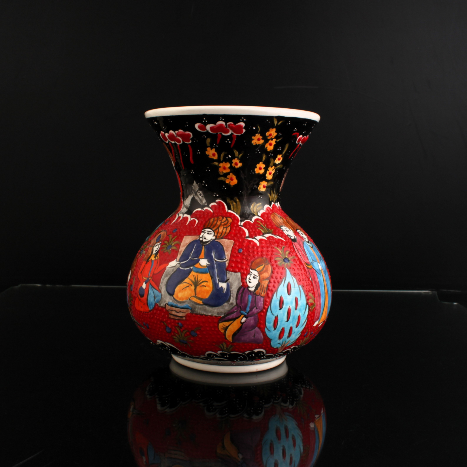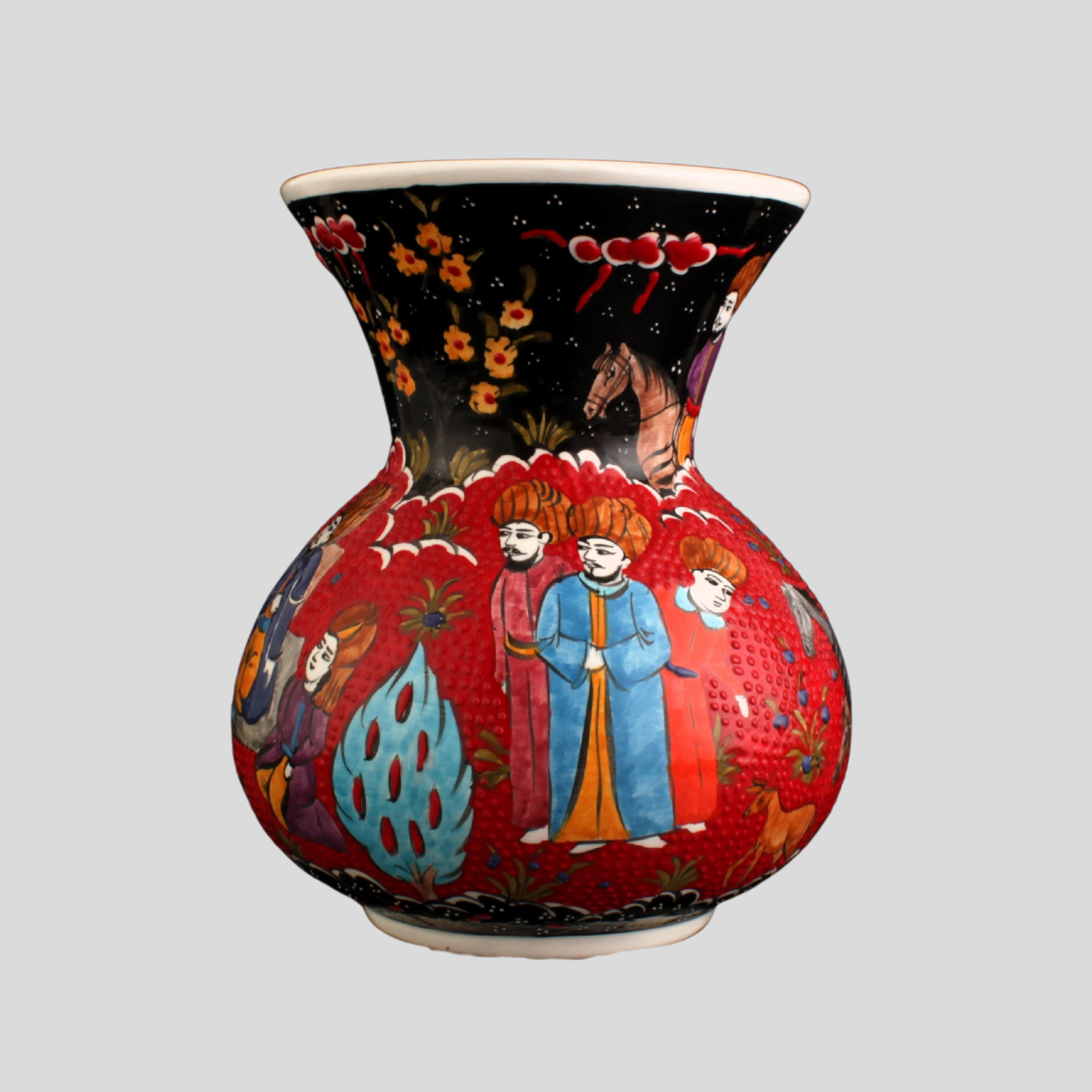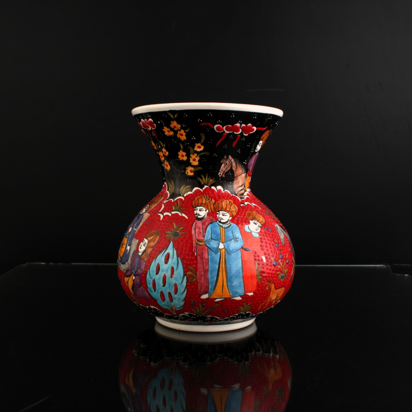 Oğuz töresindeki toy, toplumun bir araya geldiği bereket ve birlik şölenidir. Eski “saçı” geleneğindeki paylaşımdan ilhamla, motif dilinde çoğalan yapraklar ve lâle karanfil ikilisi, birlikte büyüyen aileyi simgeler. Toy Vazo, bu kültürel hafızayı çağdaş bir çizgide bugünün törenlerine taşır. Minyatür sanatına ithafen, el işçliği ile üretilmiştir.