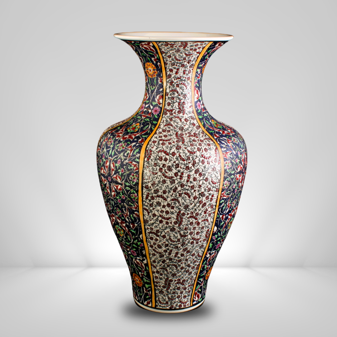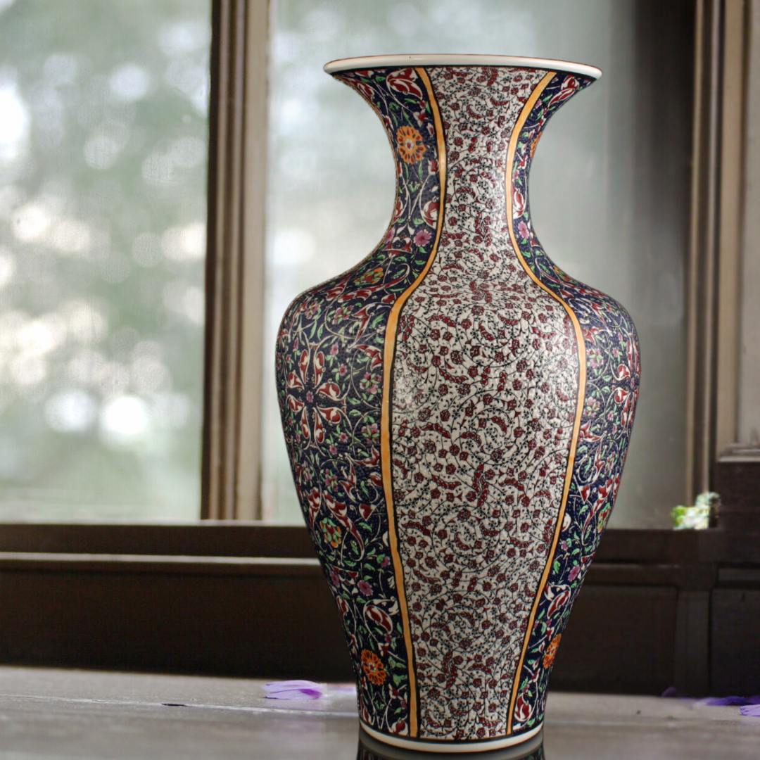 Toprak, sır ve ateşin usta zanaatkârların ellerinde sanata dönüştüğü bu vazo, hem estetik hem de tarihî bir değer taşır. Osmanlı bahçelerinden ve çini kültüründen gelen zarif çizgiler, modern dekoratif anlayışla birleşerek eşsiz bir koleksiyon parçası ortaya çıkarır.
